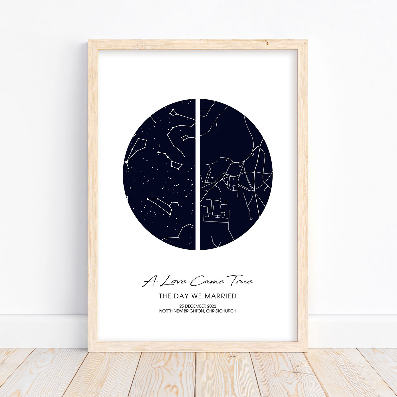 Introducing our stunning Star & Location Map Print – a unique and personalised piece of art that captures the beauty of the night sky and the special memories associated with a specific location.